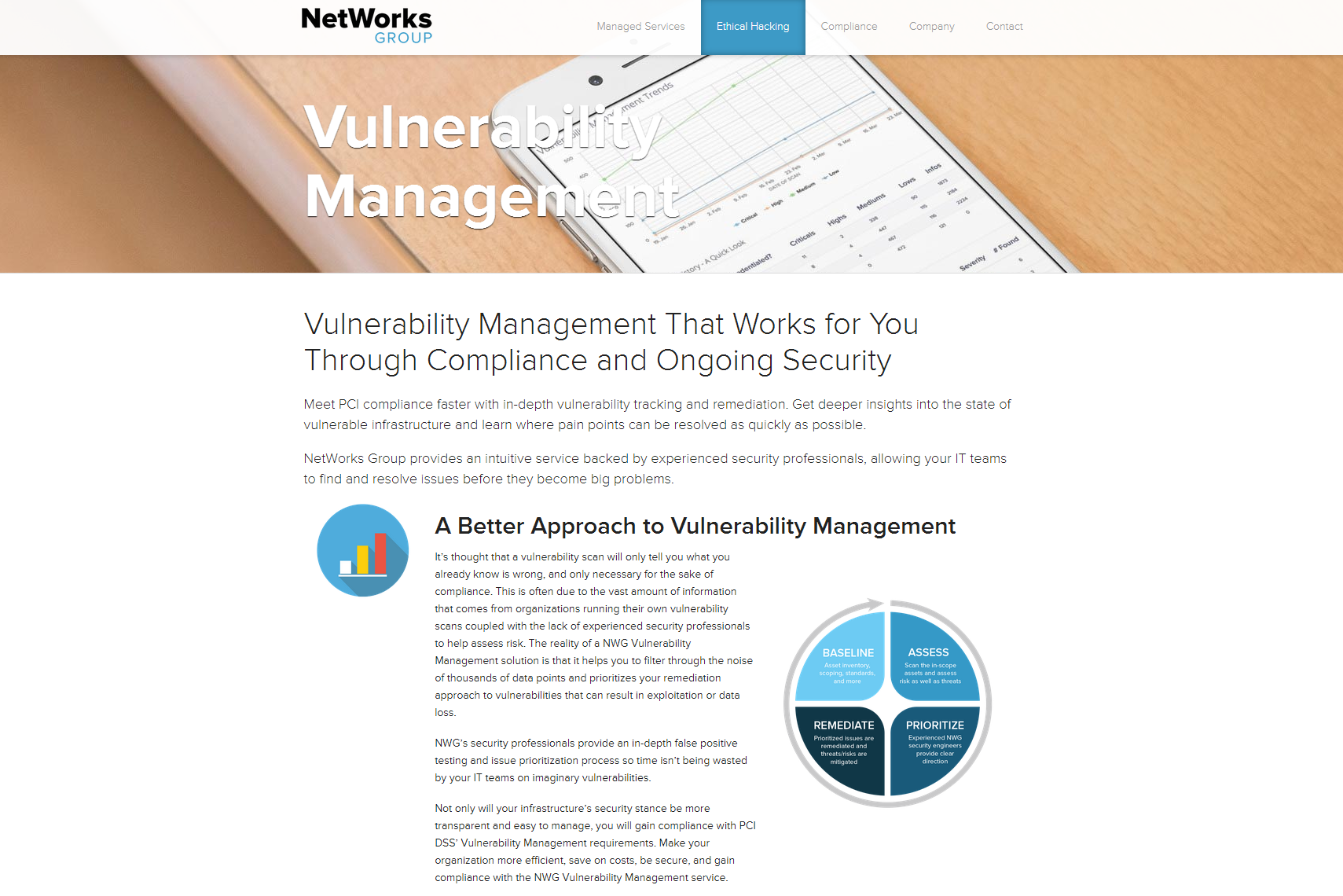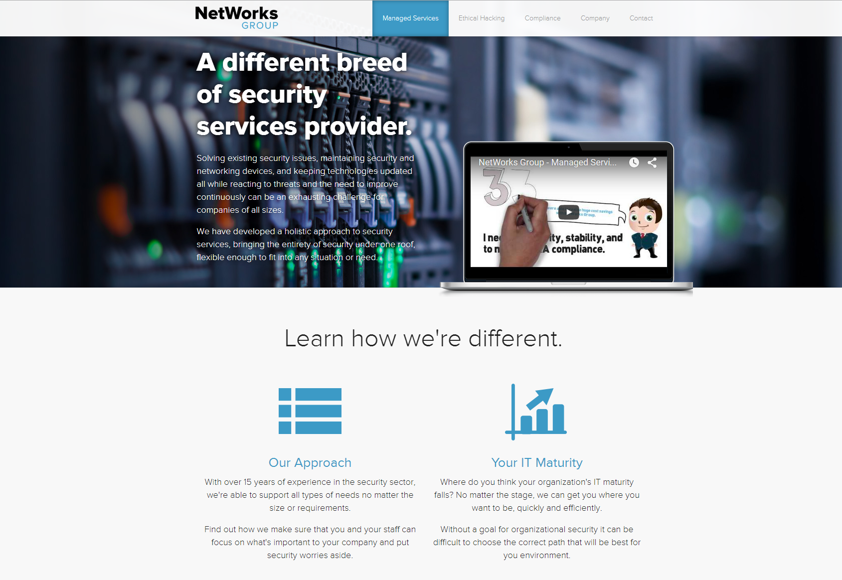 It was important for NetWorks Group to convey a message of modern technology backed by their 15+ years of experience. We took the existing Managed, Ethical Hacking, and Compliance services and rebuilt them around an updated brand as well as message.